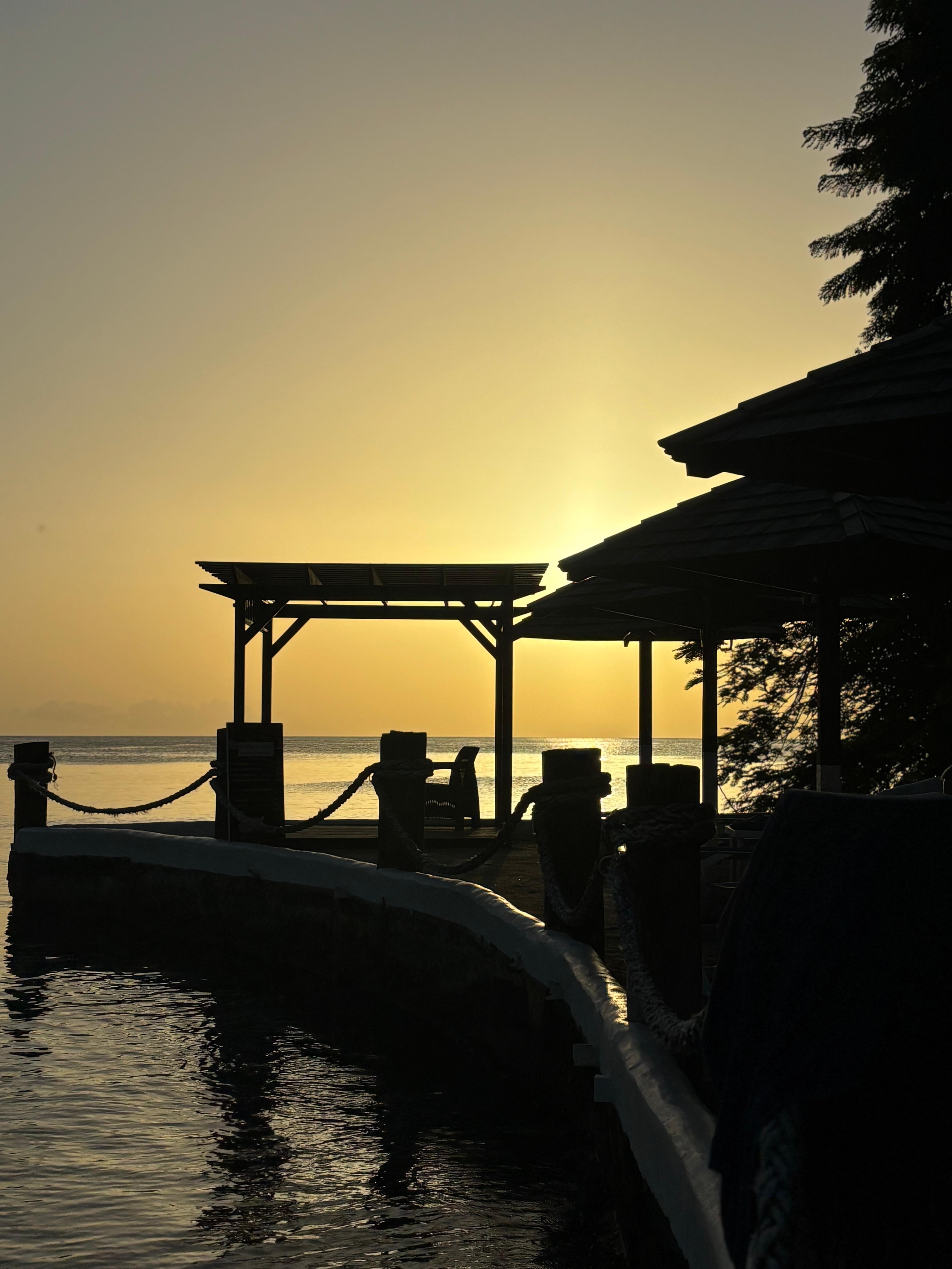 Zwei Ebenen von Unterkünften: Die obere, Hauptebene der Villa St. Lucia verfügt über zwei große Schlafzimmer mit Klimaanlage, ein Kingsize-Bett und ein Badezimmer sowie eine komplett ausgestattete Küche. Der Hauptwohnbereich ist eine große, überdachte Veranda, auf der Sie die atemberaubende Schönheit der Marigot Bay besser genießen können. Die Einrichtung ist wahr St. Lucian, der das lokale Kunsthandwerk voll ausnutzt.