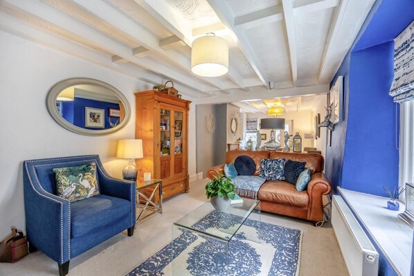 This charming cottage is full of character, offering a warm and welcoming atmosphere from the moment you step inside. As you enter, you’ll find an open-plan lounge and dining area, complete with a cosy wood burner and comfortable sofa. Relax and unwind while enjoying the Smart TV, which includes access to Netflix, Amazon Prime Video, and cable/satellite TV. For little ones, there are also children's books and toys to keep them entertained. The well-equipped kitchen is perfect for preparing anything from a morning coffee to a romantic dinner. It has everything you need for a pleasant and convenient stay. Upstairs, you’ll find two inviting bedrooms. The main bedroom features a double bed and wardrobes, while the second bedroom offers a single bed, dresser, and lamps. The family bathroom is equipped with both a bath and an overhead shower. Please note that the stairs are slightly steep due to the age and character of the property, adding to its rustic charm.