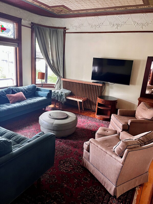 Dieses historische Haus wurde 1898 erbaut und von D. entworfen. Fred Charlton für Louis Vierling. Es wurde große Sorgfalt darauf verwendet, dieses Haus wunderschön zu erhalten. Die absolut erstaunliche 3400 qm Haus verfügt über insgesamt 5 Schlafzimmer und 3 Badezimmer. Auf der Rückseite des Hauses befinden sich 2 Apartments mit separatem Eingang von hinten. Die Wohnung verfügt über eine Küche, ein Büro und ein Bad und kann separat gemietet werden oder eine Tür zum Haupthaus kann geöffnet werden, um zwei weitere Gäste unterzubringen. Die originalen viktorianischen Details sind atemberaubend und ... 3 Glasfenster & 2 gebogene Fenster, reich verzierte Deckenverzierungen & Gipsfriese, 2 Kamine, 3 Sätze funktionierender 8-Zoll-Taschentüren, alle originalen Holzarbeiten, einschließlich Walnuss- / Ahornböden, 10 'Sockelleisten und viele originale Einbauten. Es hat immer noch den Charme und den Charakter, den es beabsichtigt hatte, aber es wurde auch mit einer wunderschönen neuen Küche mit Induktionskochfeld, Advantium-Bereich / Mikrowelle, GE Professional French Door Kühlschrank und Geschirrspüler ausgestattet, die alle aus Edelstahl gefertigt sind und den Traum dieses Küchenchefs erfüllen Küche. Es hat einen Zaun aus antikem Stangeneisen um den professionell gepflegten mehrjährigen Garten.
