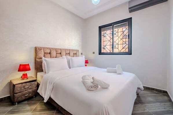 Nestled in a quiet and peaceful neighborhood, it is close to downtown. Enjoy self check-in, high-speed fiber optic WiFi, smart TV, and a bright modern space, ideal for relaxing after a day of discovery in Marrakech.