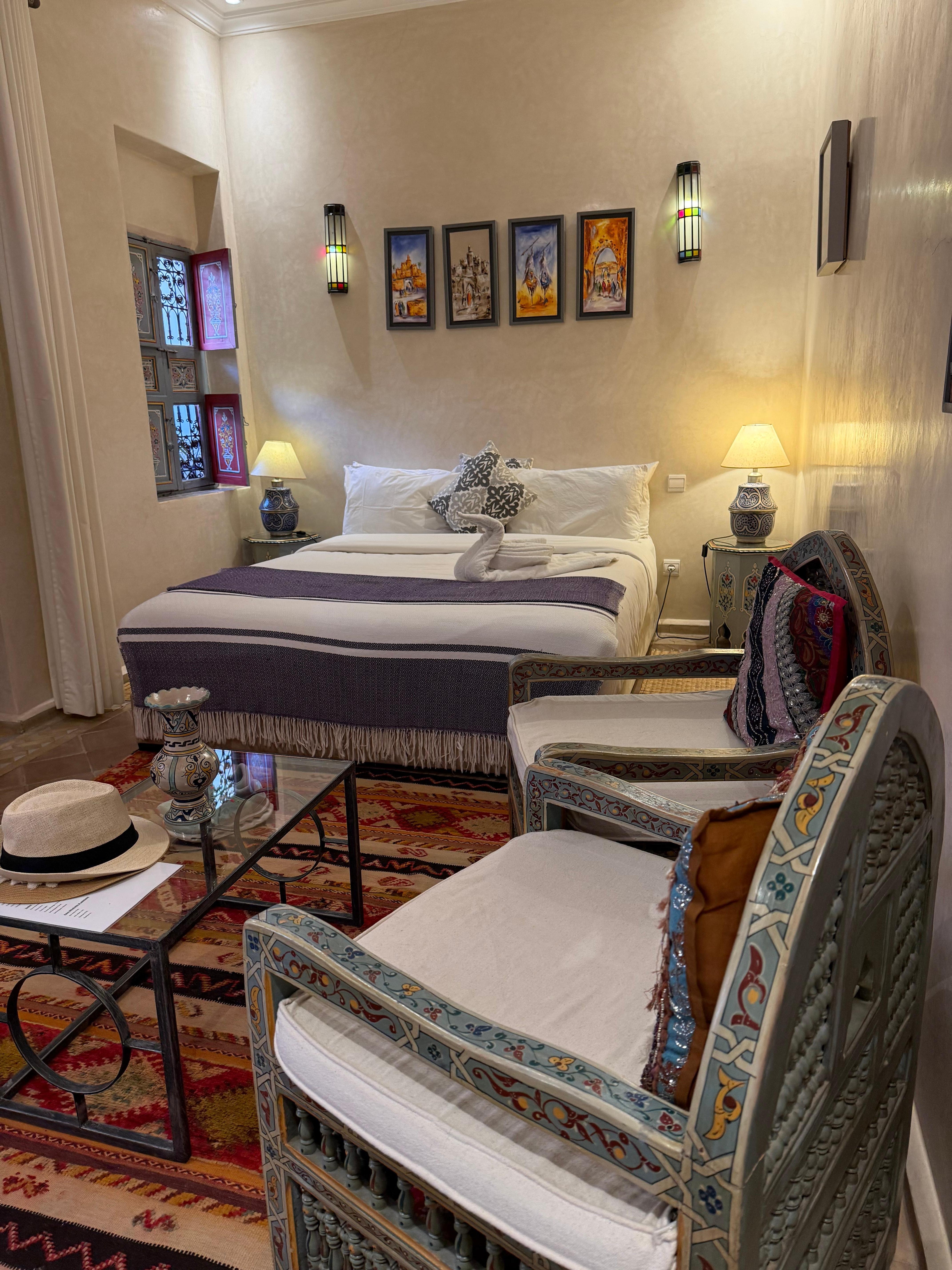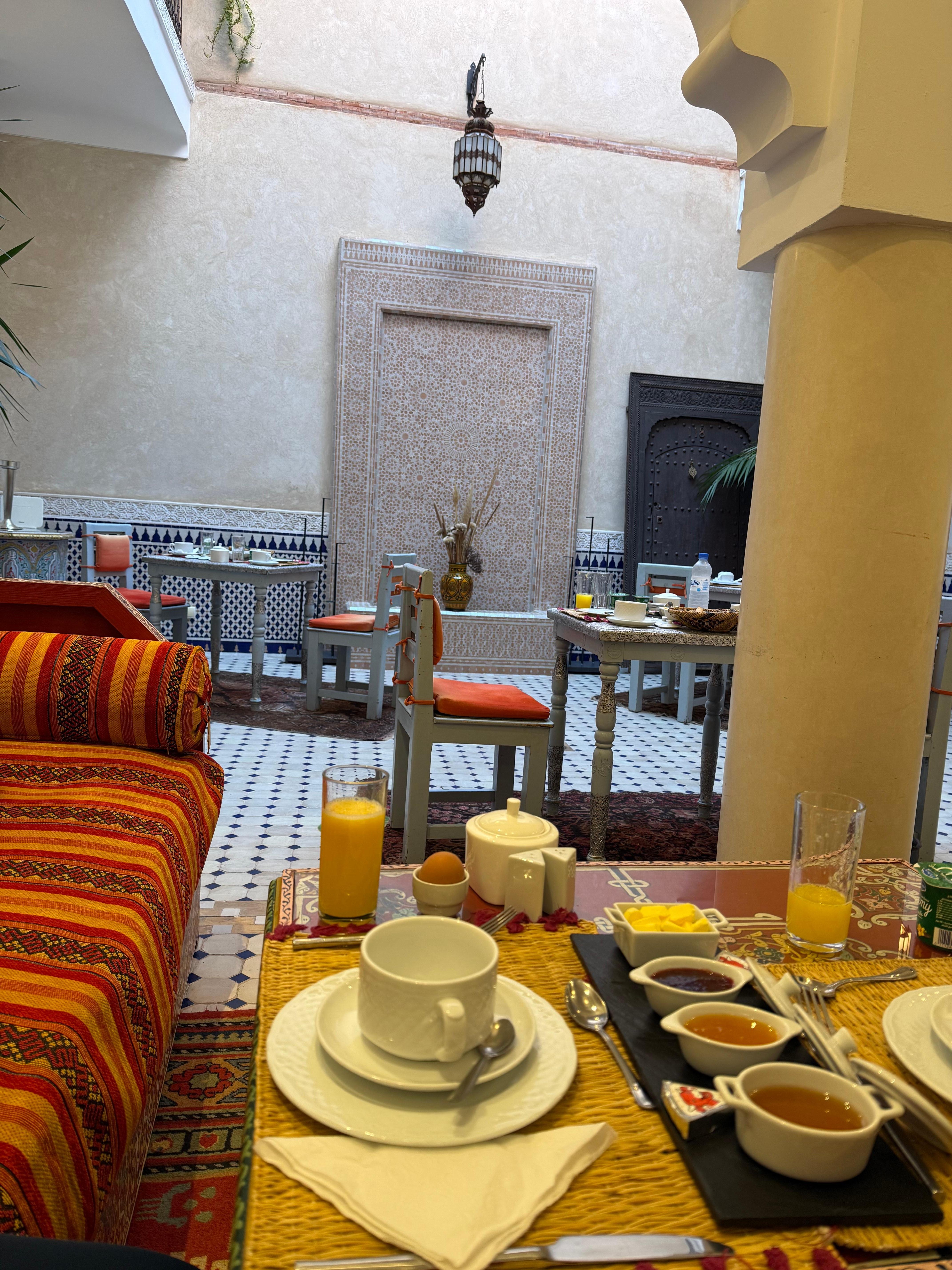 Camera e bagno un po’ freddi. Stanza comunque ampia e pulita e letto molto comodo. Personale gentile e disponibile ma al nostro arrivo non ci è stato offerto né tè né acqua e durante il nostro soggiorno non ci sono stati dati consigli / suggerimenti / informazioni sulla città.i aspettavo un’accoglienza più in stile marocchino, come del resto è il Riad. Colazione buona ma poco varia. Posizione centrale, a pochi minuti a piedi dalla piazza principale.