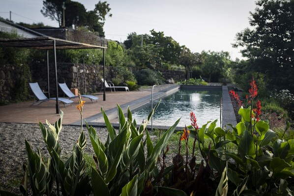 La casa di Costanza e Salvatore alle pendici dell’Etna è qualcosa di singolare, in un luogo speciale. Un posto che ci si abitua lentamente ad apprezzare, giorno dopo giorno, e alla partenza, non lo si vorrebbe più abbandonare. Vi abbiamo soggiornato una sola settimana in quattro, con le ns. bambine di 7 e 10 anni. Gli spazi sono comodi e muniti di ogni comodità come già descritto nelle altre recensioni. Molto apprezzato, lo spazio esterno con la pergola, dal quale è possibile ammirare la costa e il mare durante la colazione, mentre si cena o durante le calde sere d’estate con la sola luce delle candele. L’area circostante è in pendenza, completamente immersa nel verde e si sviluppa su piani terrazzati in pietra locale. La vegetazione è tipicamente mediterranea, con bellissime piante grasse, alberi di agrumi, avocado, uva,... Abbiamo trascorso momenti indimenticabili al bordo della piscina. A ns. parere lo spazio più bello in assoluto(!), appartato, dal quale come su di uno spalto si gode la vista verso il mare: argenteo al mattino, azzurro nelle giornate più limpide, più roseo la sera. L’Etna fumante, sempre vigile alle spalle. Veramente indescrivibile l'atmosfera nei momenti di assoluto silenzio. Ci si immerge nell’acqua che ha un’altezza costante di mt.1,40 attraverso una serie di piccoli ma profondi gradini. Il bordo scuro in pietra lavica e la pavimentazione del solarium in cotto molto comoda a piedi scalzi. Il fondale è di un colore verde-blù molto particolare che alla sola vista emette frescura. Consigliamo di cuore questa casa speciale.