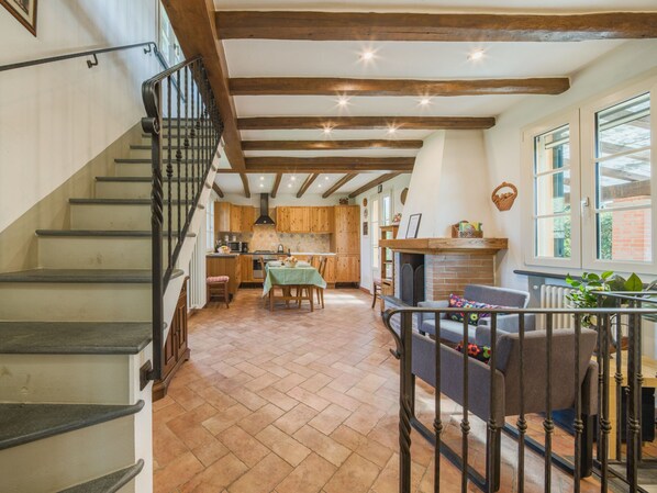 5-Zimmer-Villa 110 m2 auf 3 Stockwerken. Hell, komfortabel und gemütlich eingerichtet: offenes Wohnzimmer mit Sat-TV. Ausgang zum Garten. Offene Küche (4 Kochplatten, Backofen, Geschirrspüler, Toaster, Wasserkocher, Mikrowelle, Tiefkühler, elektrische Kaffeemaschine) mit Esstisch. Ausgang zur Veranda. Sep. WC. Unteres Geschoss: 1 Doppelzimmer. Ausgang zur Terrasse. 1 Zimmer mit 2 Betten. Ausgang zur Terrasse. Dusche/Bidet/WC. Obergeschoss: abgeschrägtes Wohn-/Schlafzimmer mit 1 Diwanbett und 1 Doppelbett. Dusche/Bidet/WC. Heizung. Grosser Garten. Terrassenmöbel, Gartengrill, Liegestühle (3). Sicht auf die Berge und die Landschaft. Zur Verfügung: Waschmaschine, Bügeleisen, Fliegengitter, Kinderhochstuhl, Babybett bis 2 Jahre, Haartrockner. Internet (WLAN, extra). Parkplatz (eingezäunt, 3 Autos) beim Haus. Bitte beachten: Nichtraucher-Haus. Maximal 1 Haustier/Hund erlaubt. Rauchmelder, Feuerlöscher. IT046018C2CFXIRQBQ