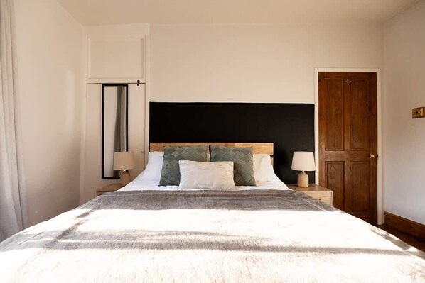 Bedroom One - Kingsize bed and quality linen, ample hanging space, dressing area with mirror. Hairdryer provided.