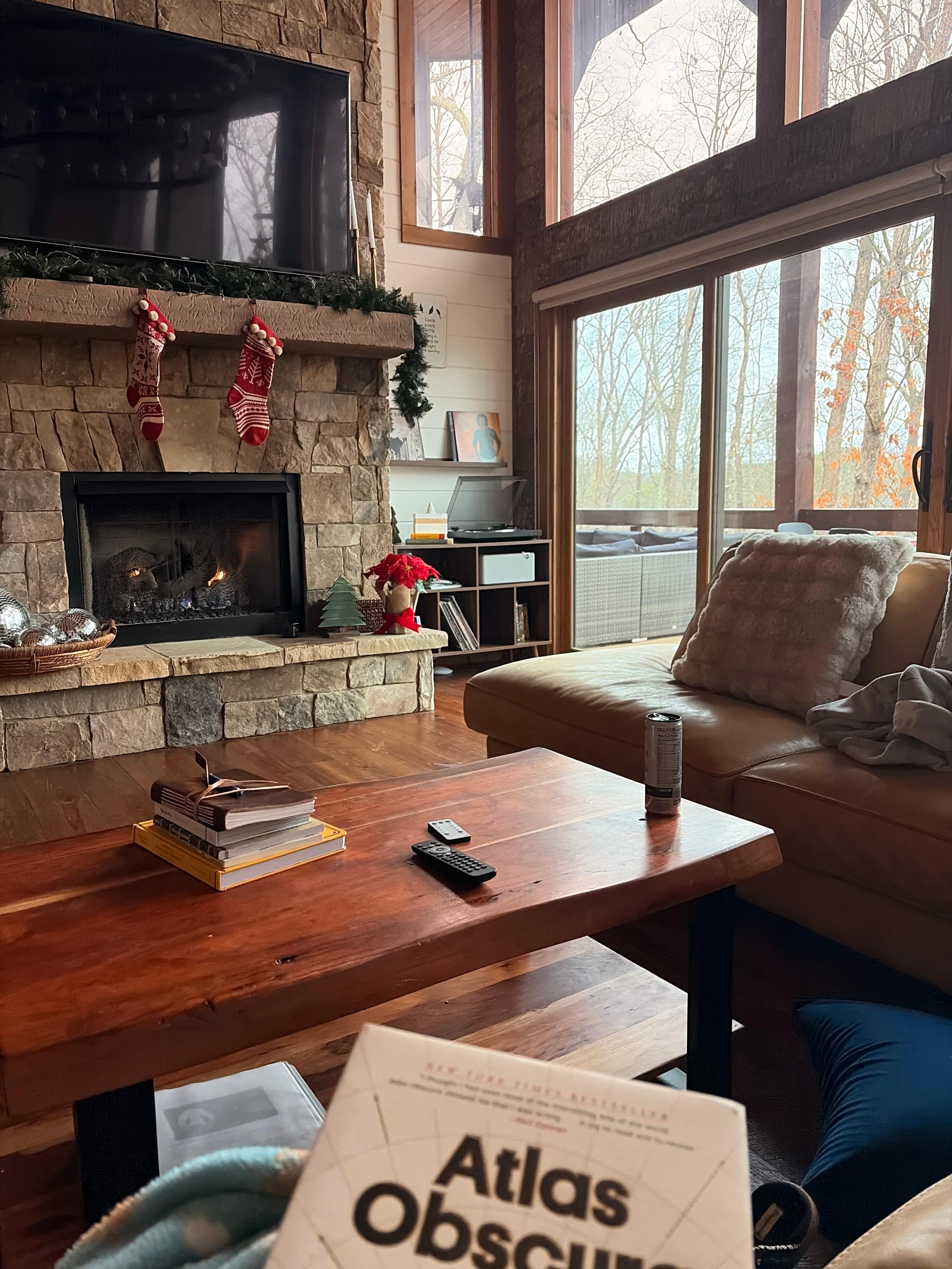 We stayed in the cabin for a week, great area, loved the local town and less than 15 min to blue ridge. Hiking in TN was great, a couple of close waterfalls. Inside Gas fireplace was amazing to heat the entire place in an instant, not sure we used the thermostat all week. Thanks again!