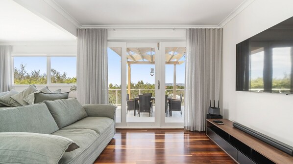 Wunderschön möbliert und mit viel natürlichem Licht und einem fantastischen Blick über die Bucht bis zu den Nachtlichtern des Berges. Martha und Arthurs Seat. Das gemütliche Wohnzimmer bietet einen fließenden Übergang zum weitläufigen Balkon und zum Leben im Freien. Genießen Sie den Komfort von Split-System-Heizung und -Kühlung, TV, WIFI, DVD und Spielen für Familienunterhaltung. Zum Frühstück gehören eine Lavazza-Kaffeepadmaschine, eine Mikrowelle, ein Wasserkocher, ein Toaster und eine Minibar. Toast, Müsli, Obst und Joghurt sind zum Frühstück erhältlich.