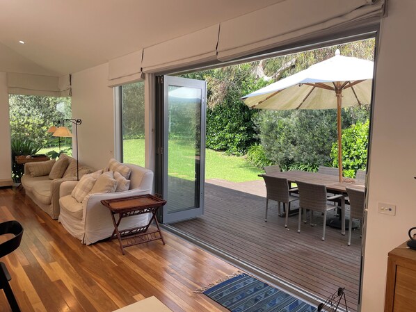 The large open plan house has separate entertainment facilities both inside and outside, allowing for people to relax as one group together or in separate spaces out of earshot.