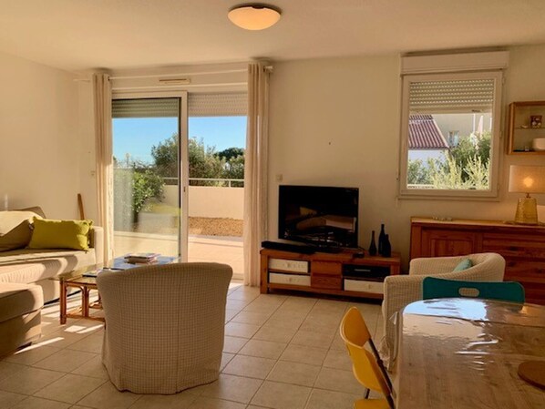 Im Erdgeschoss einer Luxusresidenz in der Nähe des Strandes, der Segelschule und des Hafens von MEZE befindet sich eine schöne, komfortable Wohnung, sehr sonnig und voll klimatisiert. Sie verfügt über ein schönes Wohnzimmer mit einer ausgestatteten offenen Küche (Geschirrspüler, Waschmaschine, Induktionskochfeld, Backofen, Dunstabzugshaube, Mikrowelle, Kühl-/Gefrierschrank), ein Wohnzimmer mit einem 140 cm breiten Schlafsofa + Fernseher und einem Essbereich. Alle bieten Zugang zu einer Terrasse von 21 m² + Garten von 17 m². Der Schlafbereich umfasst ein Schlafzimmer mit einem 160 cm breiten Bett + ein angrenzendes Badezimmer. Die Toiletten sind separat. Im Untergeschoss befindet sich eine private Garage mit einer Breite von 2,40 m x einer Länge von 4,60 m. Aufzug. Die Wohnung ist sehr gut gelegen. WIFI im Brunnen. Ideal für Familienurlaub. Tiere sind nicht erlaubt – Nichtraucherunterkunft – Bettwäsche wird nicht gestellt. Während der Heizperiode wird ein Zuschlag von 35 € / Woche für Ihren Verbrauch während Ihres Aufenthalts verlangt, der am Tag Ihrer Ankunft vor Ort bezahlt wird. VERBOT DES LADENS VON HYBRID- ODER ELEKTROFAHRZEUGEN IN DER MIETIMMOBILIE ZUSATZLEISTUNGEN
