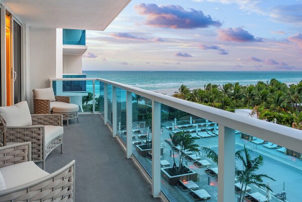 The Roney Palace sits oceanfront and in the lap of luxury, in the midst of the glitz and glamour of South Beach–separate from, but sharing amenities with the 1 Hotel and Homes, a world-class 5-star resort. Located steps from the beach, this 1 bedroom well-to-do serviced apartment makes for a perfect extended romantic getaway or family vacation for those who enjoy urban beach living among the finer things in life. The pool and beach scene are fantastic places to enjoy your time while staying in this private residence.