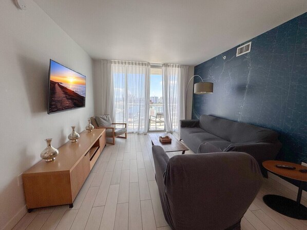 Our luxurious 2-bedroom apartment in Hallandale Beach, is located in one of the best condo-hotels in Hallandale Beach, called BeachWalk. This modern apartment features a master bedroom and an additional bedroom, both with private bathrooms, ensuring you have everything you need for a comfortable stay, whether for a weekend getaway or a longer stay.