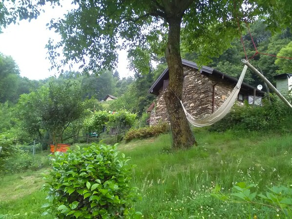 Die Berghütte im Wald des zauberhaften Val Grande bietet einen Garten und mehr.