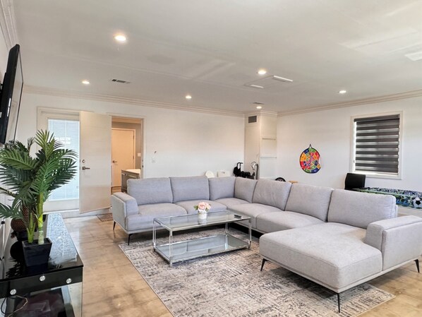 + Big living room with new and large sofa + flat TV 50in with cable and wifi connected.
