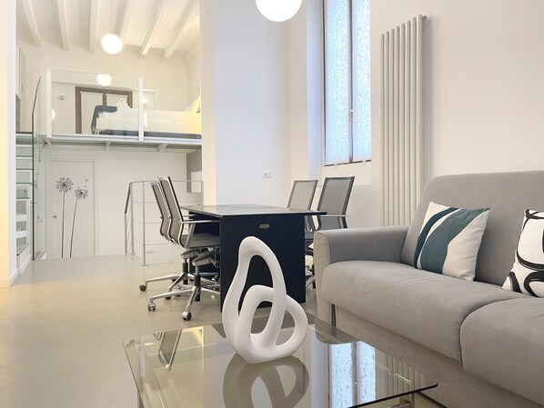 Alle Zimmer bei Flatsharing - Collegno 3 level Loft bieten Annehmlichkeiten wie eine Klimaanlage sowie Ausstattungsmerkmale wie kostenloses WLAN und Esstische.