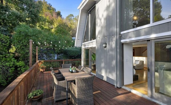 Thank you to Andrew and Kathleen for a beautiful stay at their home in Mills Valley. It was the perfect meeting point for our family (from around the country and internationally) to gather for my mother's memorial. It was easy to get to from the airport, incredibly beautiful and set up for everyone's needs. I think the family would say the highlights were the hot tub, the deck fire pit looking over the vista and generally multiple gathering spots for cooking, eating and hanging out. Moreover Andrew was always quick to respond to any questions we may have had about the house and area. I wish we could have stayed longer. It was the perfect spot for our family. Easy and relaxed.