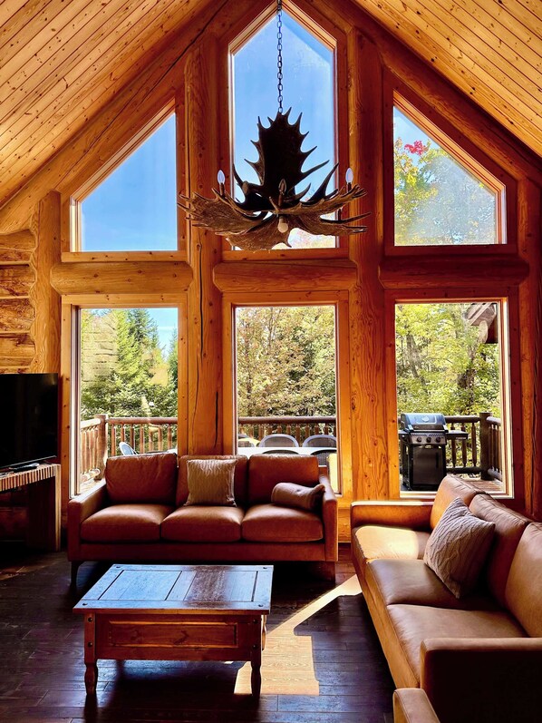 In summer, lake access makes for plenty of beautiful days, full of swimming and games. The large outdoor dining table and barbecue are perfect for gathering around a good meal. In winter, the cross-country and snowshoeing trails are a few steps away and the Sommet Morin-Heights Ski Resort is only 12 minutes away. Finish your day off with a spa, playing pool or in front of a nice a log fire.