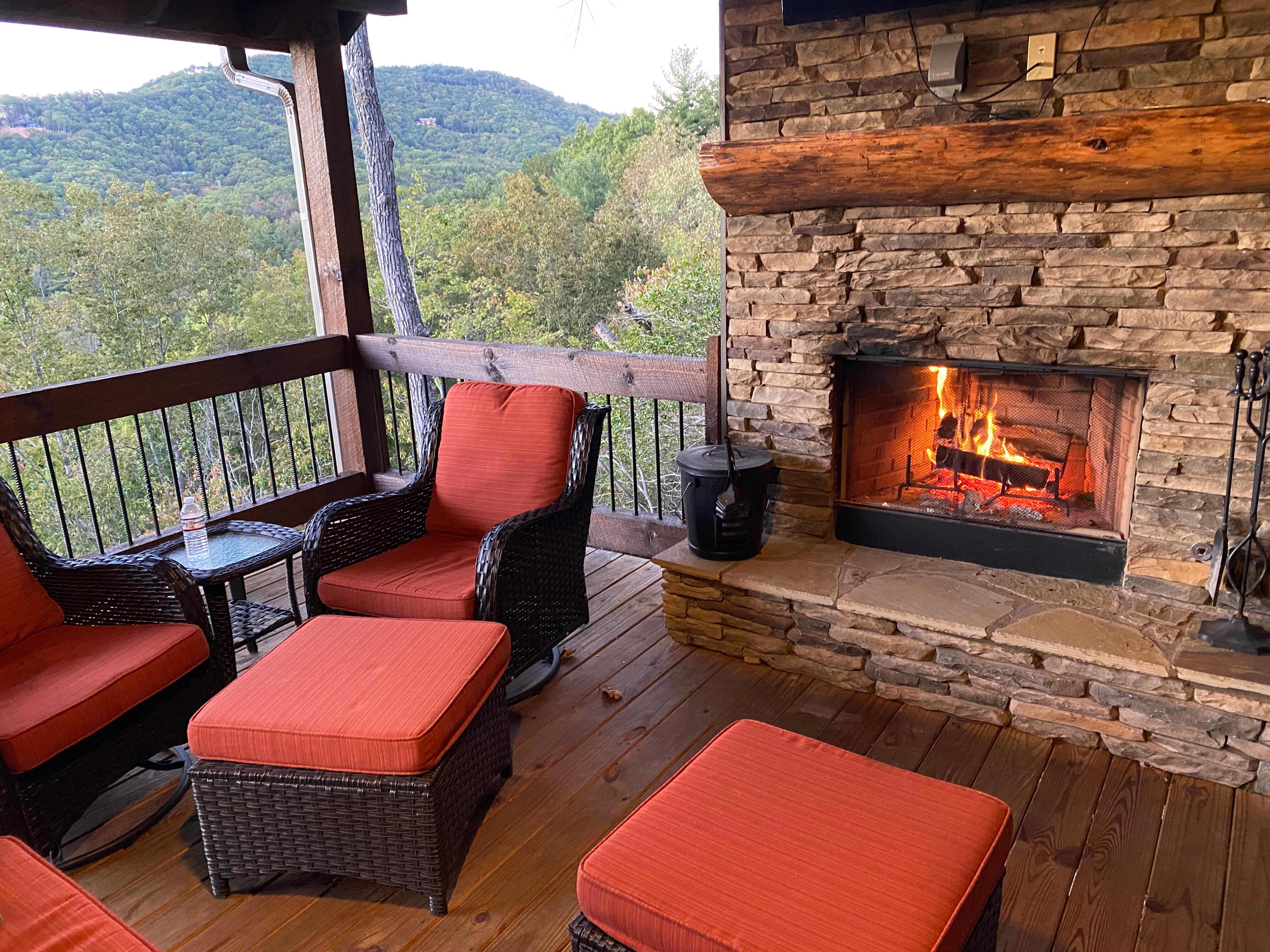 No matter where you are in the cabin, you'll be treated to majestic mountain views, whether you're sipping your morning coffee or enjoying a glass of wine on the outdoor deck. The deck is a fantastic space for outdoor relaxation and it features a wood-burning fireplace, perfect for roasting marshmallows or just enjoying the starry night sky.