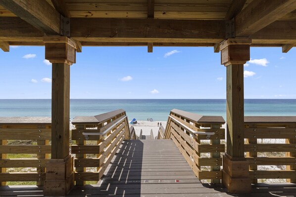 Location: Enjoy direct access to the pristine beach below via a charming dune top gazebo and a graceful pedestrian bridge over a lagoon. Popular gulf-front restaurants and bars, like The Royal Palm Grill and The Surf Hut, are just a stroll away, along with shopping at Silver Sands Premium Outlets.