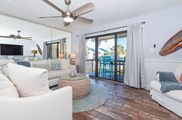 Dekoriert mit einem schicken Strandmotiv ist dieses Stadtdomizil perfekt für Urlaubsparties aller Art; Von einem ruhigen Pärchen-Retreat bis hin zu einem spaßigen Familienurlaub. Blue Surf 21 wurde im Laufe der Zeit aktualisiert und enthält mehrere Upgrades, die diesen Urlaub unvergesslich machen werden. Einige Upgrades, von denen Sie nach Ihrer Abreise träumen werden, umfassen maßgefertigte Holz-Look-Fliesenböden, Granit-Arbeitsplatten, Flachbildfernseher und eine Wet Bar! Versteckt in einer ruhigen Wohngegend entlang des Scenic Gulf Drive, finden Sie sich nur wenige Schritte vom Strand entfernt und immer noch in der Nähe aller Sehenswürdigkeiten von Destin.