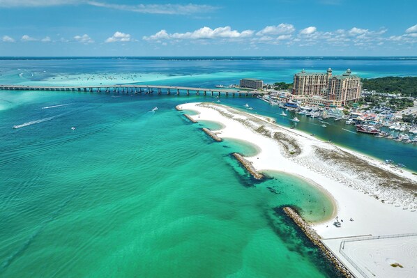When we arrived, the condo was clean and decorated perfectly for the beach life. We immediately left to go to Publix and purchased food and extra toilet paper as we were staying 5 days. All the necessary kitchen items were available for us to cook. The beach was right across the street, down a flight of stairs and everything was gated. We felt safe and the beach was so clean and beautiful! There's an Alvin's right across the street if you want any beach toys or necessities. The condo was equipped with 3 beach chairs, an umbrella and noodles. We did rent beach chairs and an umbrella right on the beach as we had 4 of us. We also utilized the pool and hot tub on the property, which is also gated. There is a coffee shop, ice creams shop, CVS and gas station within walking distance. We Ubered our way to Destin for some activities, but there are also water activities on Mirimar Beach. We were able to contact the management company (Julie) with any questions we had and she immediately took care of our needs. Our vacation was everything we dreamed it to be and we thank you Michelle and Bob. Your place is beautiful!