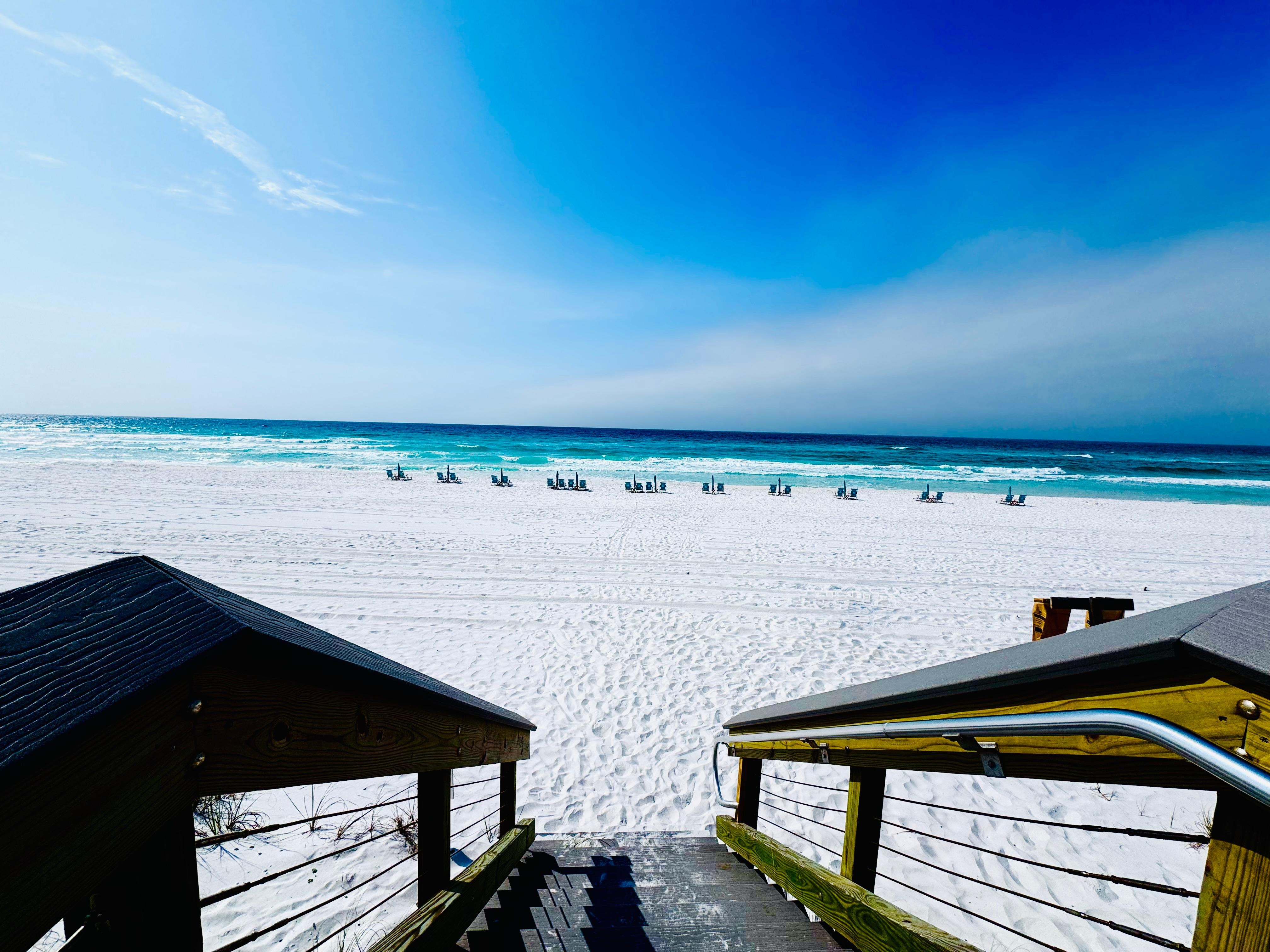 We were a group of 7 women in our sixties that have been going to Sandestin/Miramar beach for years. This is by far our favorite property. It truly is a perfect beach home that is very comfortable and has everything you need for a great week. The beds were comfortable, living room is great, kitchen a little small for 7 women but we made it work. The covered patio, pool, and pool deck were great except it could use some new comfortable patio furniture. We were very pleased that there is a gate that goes from the pool deck to the neighborhood beach ramp that made it so convenient and easy for us, especially for one of friends that has stage 4 bone cancer that’s on a Walker/cane. The manager should put a picture of that gate showing that it’s easy to get to the beach. The other thing we were pleased to find that the big bedroom downstairs has 3 twin beds instead of the two communication with Managment was excellent. There was a little problem with the door alarm but they came within 10 mins to fix it. We hope to come back next year!