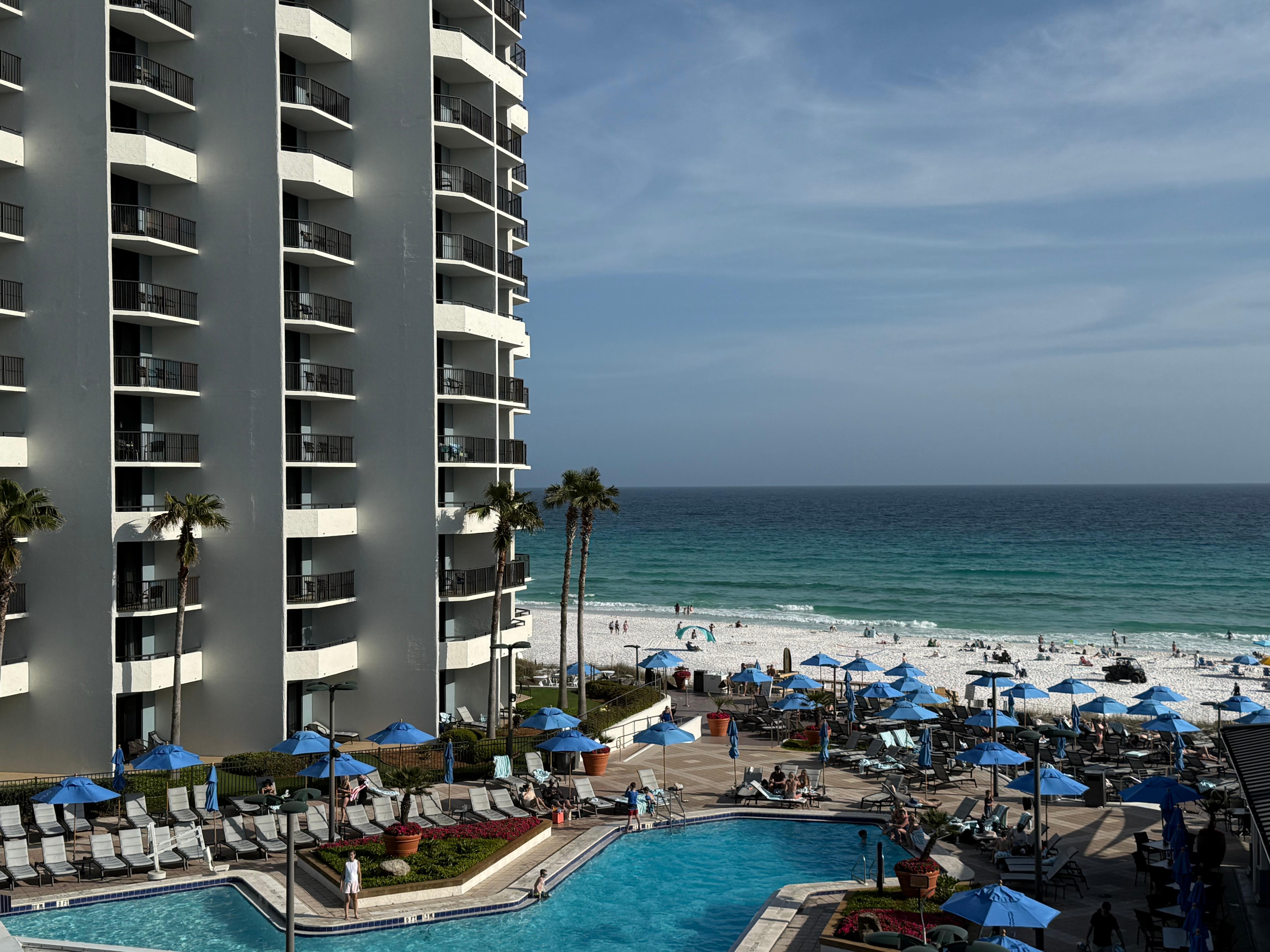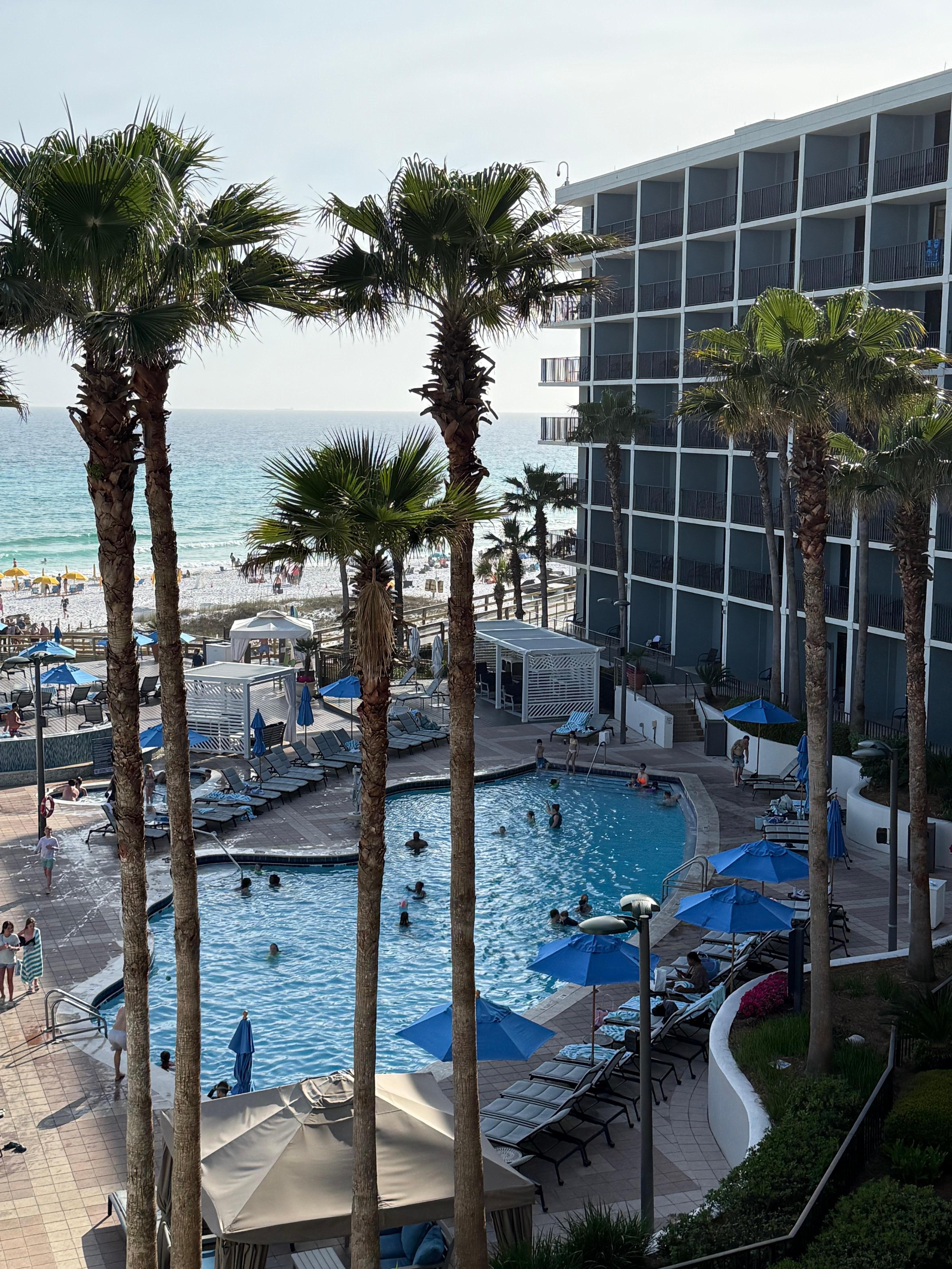 This was are 2nd time to this Hilton property and it did not disappoint. There had been remodeling done since our last trip & it was very nice. Love this resort and have booked another stay for October. You wouldn’t have to leave the resort if you didn’t want too. Plenty of amenities. Food is delicious! Wonderful breakfast with omelet and waffle and pancakes made to order along with an amazing buffet. Food at the other restaurants did not disappoint. Two large pools that never feel crowded. Plenty of outdoor seating. Ice cream & pizza available at pool area in assisting to outside restaurant. The resorts private beach area is large and close to pool area with a very short walk to the beach. Spa on the property has a. Umber of services. Room service. Laundry facilities. Valet parking. Upscale steak restaurant. Nice gift shop. Sushi restaurant. Indoor pool. Workout facilities. Best place to stay in San Destin or Destin. Love this place!!!