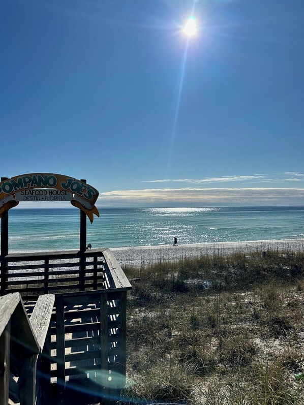 Unser 2-Schlafzimmer, 2-Badezimmer-Einheit 7 Blue Surf Townhome in Destin, Florida wurde komplett umgestaltet: Neue Küche mit Granit, Birkenholz, Edelstahlgeräten und Essmöbeln; Neue Flachbildfernseher in Küche, beide Schlafzimmer und das Wohnzimmer, Fliesen- und Granitbadewannen - eines mit begehbarer Dusche, das andere mit Doppelwaschtisch - neue Einrichtung und Dekor.