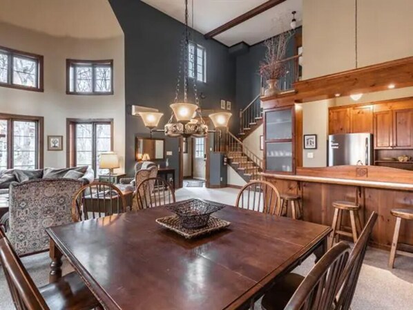 Welcome to the Manoir Getaway! Located in the heart of Mont Tremblant. Walking distance to everything yet nestled back just enough to enjoy the peace and quiet setting that nature provides us. This beautifully appointed townhome, featuring high beamed ceilings, warm wood finishings and an inviting open layout, make it the perfect place to gather with friends and family while creating lasting memories.CITQ# 249583