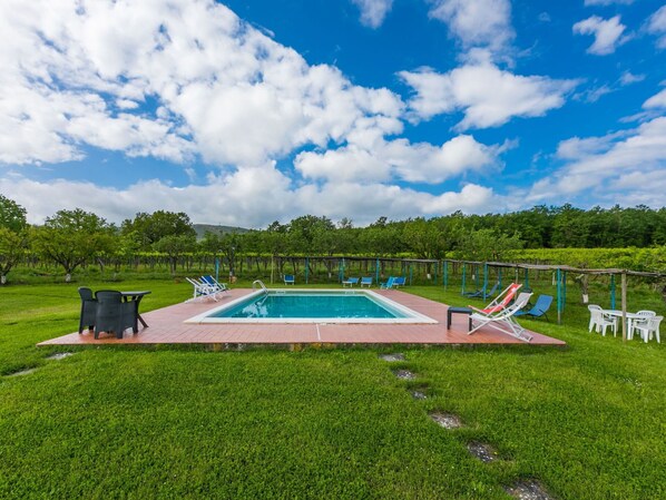 Schöne Wohnung in einem Ferienhaus mit W-LAN, Pool, TV, Innenhof, Haustiere erlaubt, Panoramablick