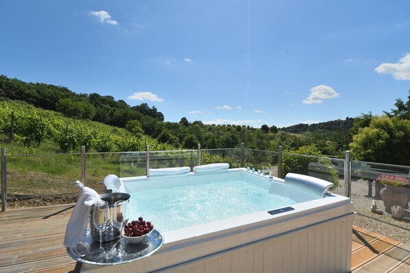 Atemberaubendes alleinstehendes Ferienhaus mit Whirlpool, privatem Pool, W-LAN, Klimaanlage und TV