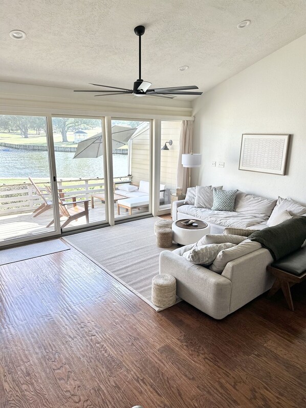 The Cove on Conroe -Are you looking for the perfect getaway on Lake Conroe? Look no further than our recently updated 3 bedroom, 2 bathroom townhouse! Nestled within the April Sound Country Club Community, this 1600 sq ft waterfront townhouse is packed with all the amenities you need for an unforgettable getaway. Light up the smokeless tabletop fire pit for a cozy night on the deck or slip on your swimsuit and enjoy all the lakeside amenities just steps away.