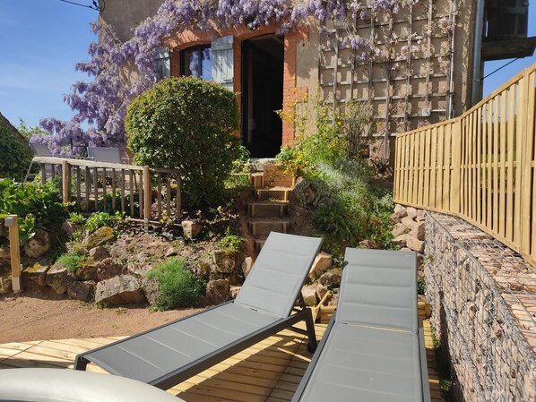 Patricia & Jean-Paul open the doors of a charming authentic 19th century character home, steeped in history & carefully restored, nestled in a quiet area on an old agricultural estate made up of various buildings, all perfectly renovated, on the edge of a mini rural hamlet. Literally enchanting setting & site, nestled in a "balcony" on a well-exposed southwest hillside, facing a sublime bocage plateau (home to the famous peaceful Charolais cows in season). Magnificent panorama & sumptuous landscapes. Absolute calm, in the hollow of a magnificent undulating cirque, nestled under the wooded ridges of the surrounding hills, on the slopes of Mont Saint-Cyr, the highest point in southern Burgundy (unique belvedere offering an exceptional panoramic view as far as Mont-Blanc on a clear day!). Sublime preserved setting of greenery & nature, a true haven of peace & rest. Spacious gîte with very good comfort. Beautiful volumes. Warm "country chic" spirit combined with the exotic soul of the place (preservation of beams, stone walls & beautiful original wooden molded cupboard wall doors). Cozy & ultra cozy atmosphere. Lots of charm & character. Intimate large exposed & shaded terrace, very carefully planted & flowered in the spirit of a "micro-garden", arbitrating a covered spa, completed by a mini panoramic terrace perched in a "belvedere", equipped with a relaxation lounge. Composition: Access to the property by 400m of passable dirt road. Semi-detached house to the owners' home, neighboring a second gîte (total independence without vis-à-vis). Wifi (fiber). Central heating (mixed wood / oil). 1st floor (access by staircase going up from the courtyard-parking): living room-kitchen-lounge. 2nd floor: bedroom (double bed 140x190cm + single sofa bed 80x190cm as an extra), bathroom (shower/WC). Double terrace + sheltered outdoor spa (4 places) + bicycle storage + private parking. Small shops 9 km. Supermarket 14 km. Exceptional setting & picture-postcard landscapes! Charming authentic 19th century mansion carefully restored - with an intimate terrace housing a covered outdoor spa - nestled on a southwest-facing hillside, on the edge of a peaceful mini rural hamlet, 9 km from the charming typical village of Dompierre-Les-Ormes (small shops on site) & 14 km from the charming market town of Matour labeled "Green Holiday Resort" (very many amenities and remarkable level of leisure facilities). Absolute calm in the heart of the rolling Charolais countryside, nestled in the hollow of a sublime bocage plateau nestled under the wooded ridges of the vast surrounding wild forests (partly classified & protected in "Natura 2000 Zone" for its remarkable ecosystems), soothing preserved setting of nature & greenery nestled at the foot of Mont Saint-Cyr (highest point of southern Burgundy) on the foothills of the Beaujolais massif, neighboring the upper Clunisois & its "green valleys" of South Burgundy like the verdant valley of the Grosne (the "Little Switzerland of Mâconnais"). Prime location on the routes of several marked "green walk" hiking trails (attached to a very rich network of identical paths crisscrossing the territory, to be explored on foot or by mountain bike), 3 km from the GR7, 7 km from a referenced "favorite bike loop" of 88 km (another route of the same type of 63 km accessible at 17 km) & 26 km from the Green Way of the "Grande Boucle de Bourgogne du Sud", not far from the first vineyards of Beaujolais (the first vineyard in the world recognized as a "UNESCO World Geopark") & the Côtes Mâconnaises (including the famous "Val Lamartinien" / "Route des Vins de Bourgogne" to explore), close to the circuit of Romanesque churches. Ultra-privileged location at the crossroads of Charolais-Brionnais (cradle of the world-renowned AOC cattle and sheep breeds) & Clunisois-Tournugeois (both territories labeled "Pays d'Art & d'Histoire"), at the crossroads of Mâconnais, Beaujolais, as well as the departments of Rhône & Loire. Ideal for exploring (RCEA access 12 km away): 15 km from La Clayette, 19 km from Charolles, 30 km from the famous abbey city of Cluny, 31 km from Paray-le-Monial, 36 km from Charlieu, 39 km from Beaujeu (historic capital of Beaujolais), 40 km from Marcigny ("Cluniac site" famous for its Monday morning market created in 1266), 45 km from Digoin (river marina connected to the Canal du Centre & the "tranquil canal" linking Digoin to Roanne), 40 km from the sumptuous landscaped jewel of the Roches de Solutré & Vergisson labeled "Grand Site de France" & 45 km from Mâcon (Mâcon TGV station 43 km away). Possibility of group rental with the second gîte on the property (reference 3006) for a total capacity of 5 people. A perfect cocoon of charm for an ultra-relaxing green getaway for lovers! A literal haven of peace and rest!