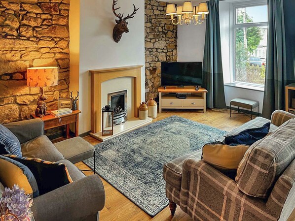 Badezimmer: Mit Dusche über der Badewanne, Toilette und Fliesenboden. Gaszentralheizung, Gas, Strom, Bettwäsche, Handtücher und WLAN inklusive. Hochstuhl und Treppengitter. Kleine umzäunte Terrasse mit Gartenmöbeln und Feuerstelle. Parken auf der Straße. Rauchen verboten.. Das Bertram Cottage ist ein geräumiges Cottage in modernem und traditionellem Design und wurde 2019 mit viel Liebe zum Detail renoviert. Dieses Reihenhaus mit freiliegenden Steinarbeiten liegt nur wenige Gehminuten von einem Café und einer sehr freundlichen Dorfkneipe entfernt. Das Anwesen ist perfekt für Paare oder eine kleine Familie und verfügt über einen bezaubernden geschlossenen hinteren Sitzbereich. Hunde sind hier willkommen und es gibt viele Wanderwege in der Nähe.