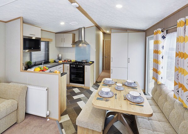 A modern holiday home with one master double and two twin bedrooms. One family bathroom with shower and one additional W/C room. Open plan kitchen and dining room. No pets.. Golden Sands Holiday Park is a lovely family run Holiday Park located opposite the beach in the small village of Cresswell. The Holiday Homes are situated approximately 200 meters from the beach. Park facilities include a clubhouse with a family room downstairs and adults only bar upstairs, outdoor children’s play area, launderette, small gym, small arcade room, skateboard park, golf practice area and a multi-sports area.