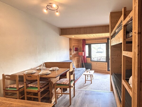 Dieses Studio-Apartment im obersten Stockwerk der Snow Residence bietet Platz für vier Personen und einen unverbauten Blick auf die Avoriaz-Berge von seinem kleinen Balkon aus. Dank der Nordausrichtung genießen Sie hier absolute Ruhe.