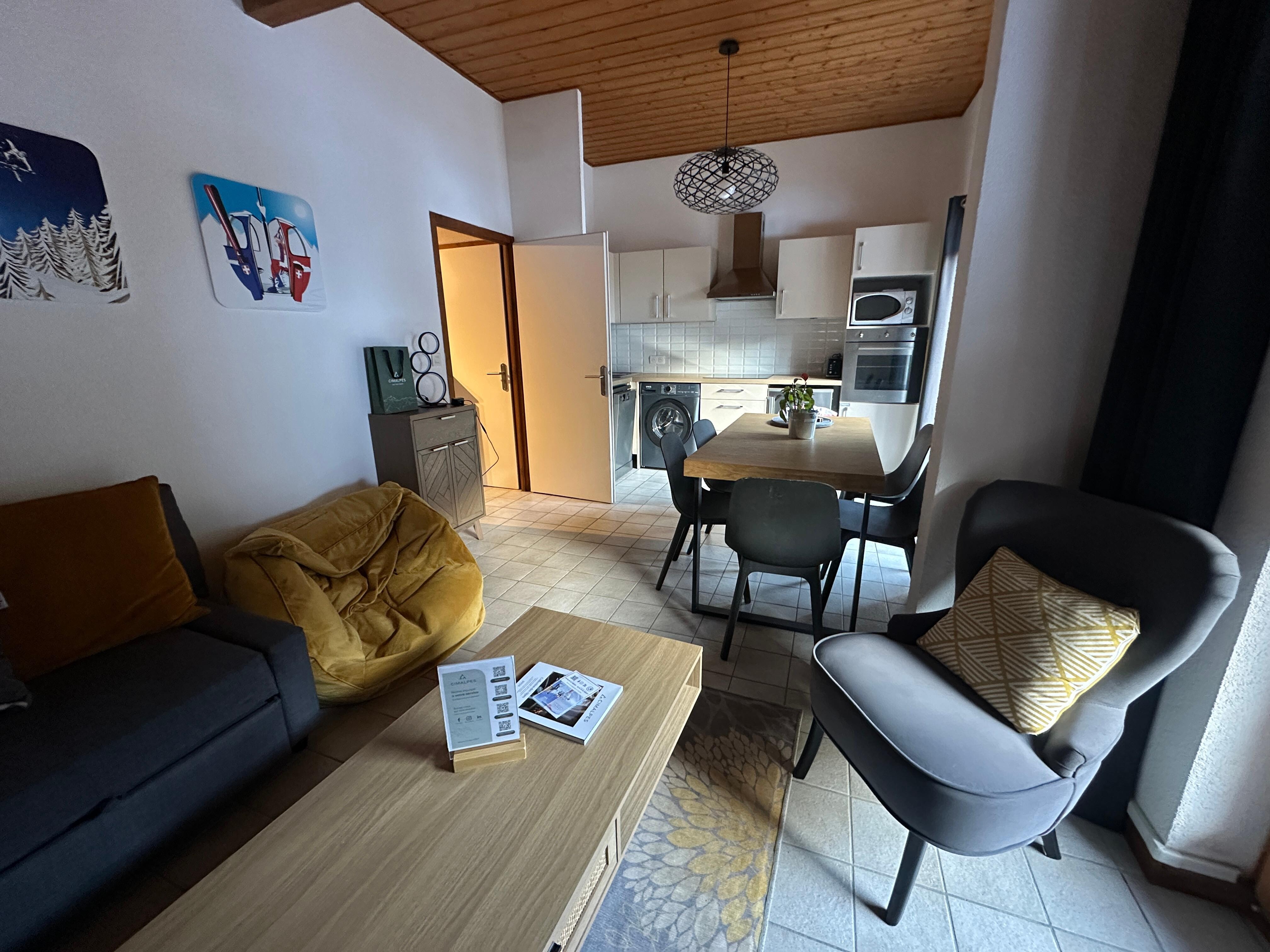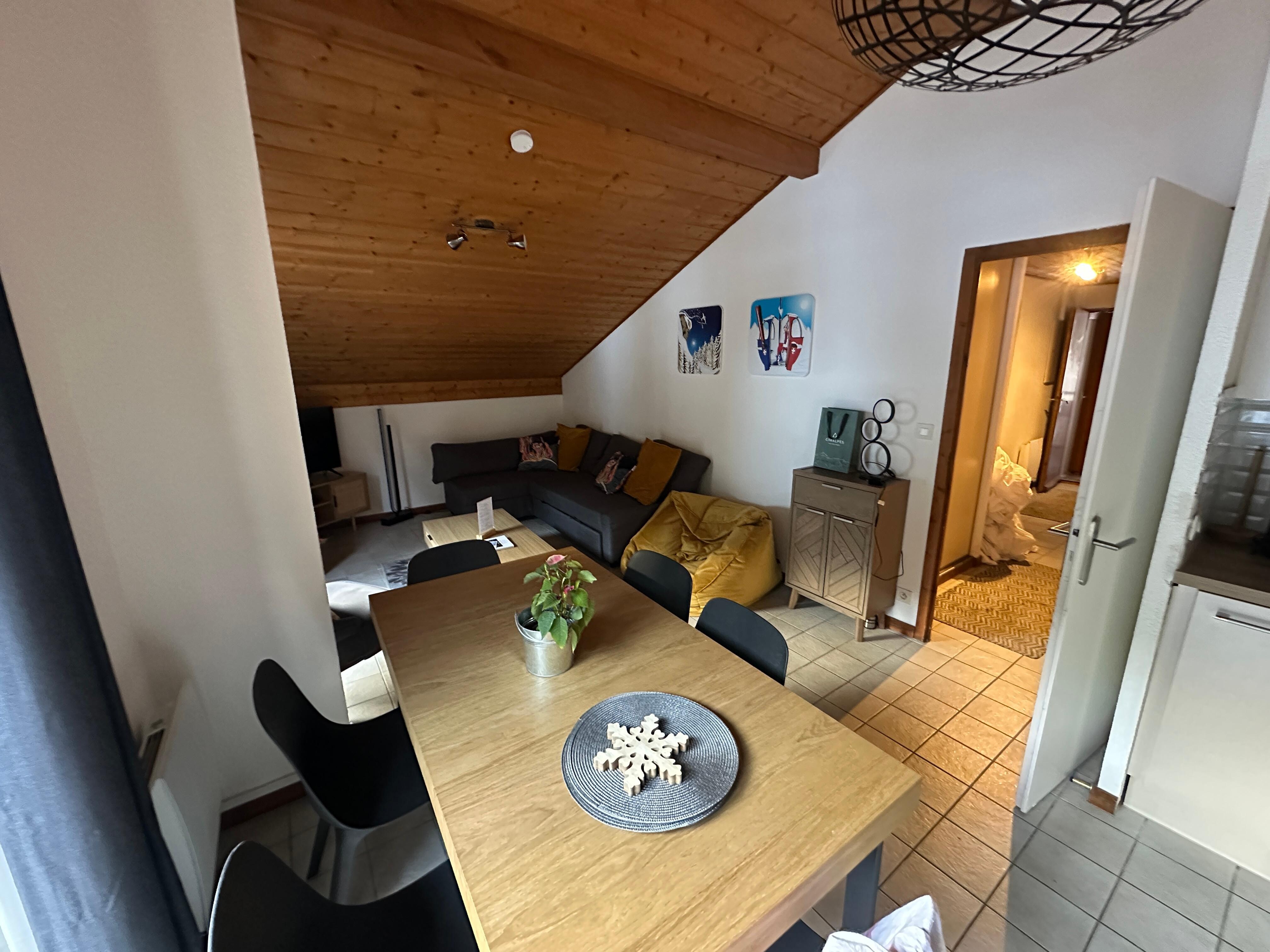 3-Zimmer-Apartment im 3. Stock (mit Aufzug) der Résidence LE VIEUX MOULIN, direkt an den Pisten und der Nyon-Seilbahn gelegen und nur 5 Fahrminuten vom Zentrum von Morzine entfernt.