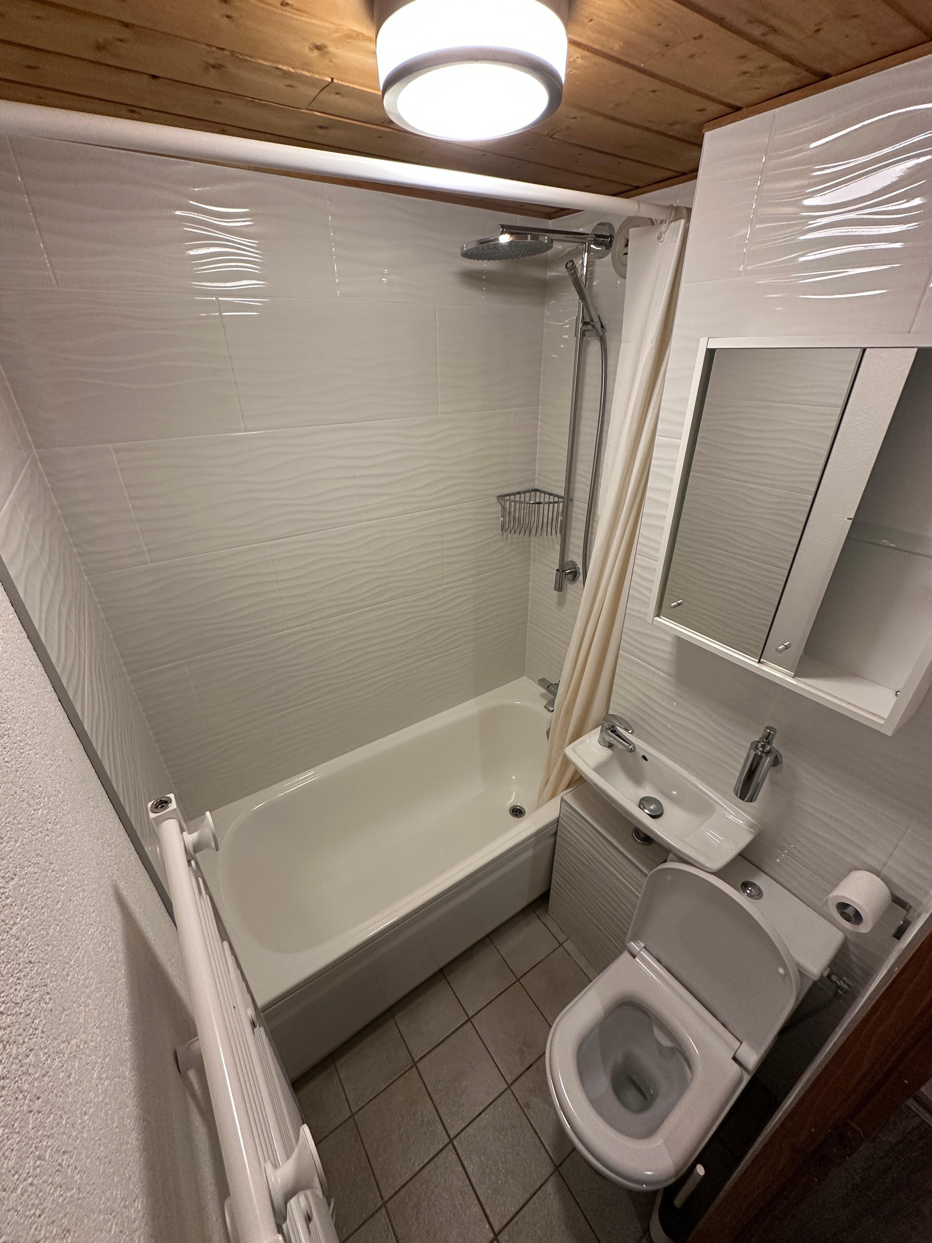 - Schlafzimmer 3 mit Etagenbett (80 x 190 cm) + Duschkabine und Waschbecken