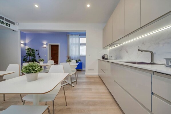 Communal Area| Fully equipped kitchen with all the utensils necessary to fix a good meal! theres also ample seating space.