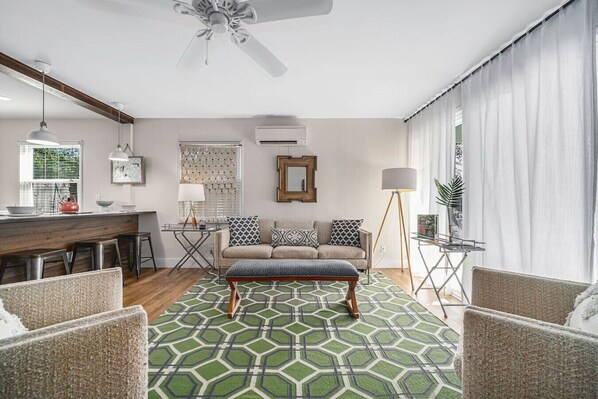 - Open living area with Smart TV