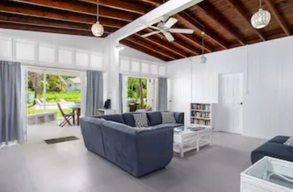 The open plan nature of the villa affords a light and airy feeling whilst the gentle tradewinds help to keep it comfortably cool. Being single story makes our property ideal for multi-generational family holidays whilst the secluded, quiet location is an ideal retreat for couples alike.