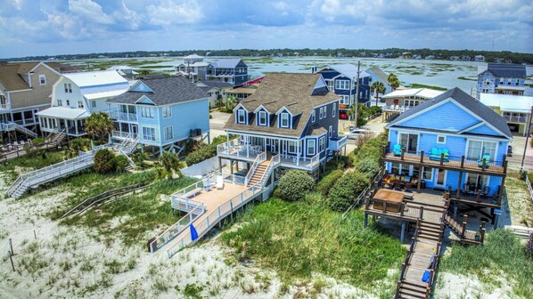 Our Three Suns (ehemals My Kansas) ist ein fünfeinhalb Badehaus am Meer, 1,5 Kilometer südlich des Garden City Pier. Dieses Haus verfügt über eine voll ausgestattete Küche mit Mikrowelle und Geschirrspüler, Waschmaschine, Trockner, Zentralheizung und Klimaanlage sowie Deckenventilatoren. Sechs Farbfernseher (Kabel, ein 50-Zoll-Flachbildschirm), sechs DVD-Player, ein Telefon mit kostenlosen Ferngesprächen (nur USA) und WLAN sind ebenfalls vorhanden. Die Schlafgelegenheiten umfassen drei Kingsize-, eine Queen- und ein Twin-Size-Bett sowie zwei Etagenbetten für zwei Einzelbetten und ein Rollbett. Für Kleinkinder und Kleinkinder stehen ein Laufstall und ein Hochstuhl zur Verfügung. Zu den Außeneinrichtungen gehören eine große Terrasse am Meer, eine Sonnenterrasse, Zugang zum privaten Strand, zwei Ankleideräume mit separaten Duschen und ausreichend Parkplätze für fünf bis sechs Fahrzeuge. Rauchen verboten. Keine Haustiere. Check-Out Reinigungsservice inklusive. Bettwäsche inklusive. Maximale Belegung: 14