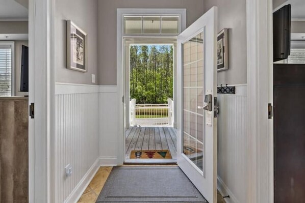 Just off the living room is also a screened in balcony with its own ceiling fan and a pair of bistro tables to sit outside and enjoy your morning coffee.