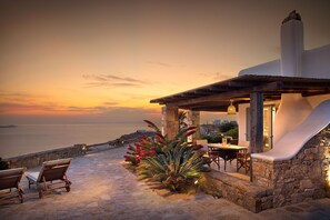 Die Villa befindet sich in Fanari, einer ruhigen Gegend an der Nordwestküste von Mykonos. Die Villa befindet sich in windgeschützter Lage und bietet einen Panoramablick auf die Ägäis und die Bucht von Houlakia.