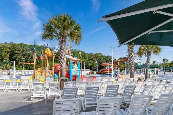✓ 4-acre water park with slides, splash zones, and lazy river