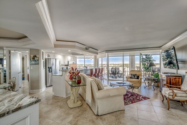 Diese wunderschöne 2bd / 2ba Eigentumswohnung wurde komplett mit erstklassigen Upgrades und luxuriösen Möbeln renoviert. Genießen Sie den Komfort von zu Hause in dieser eleganten Wohnung am Strand. Dieses Gerät bietet bequem Platz für 4 Gäste mit 1 Kingsize-Bett im Hauptschlafzimmer und 1 Queensize-Bett im 2. Schlafzimmer.