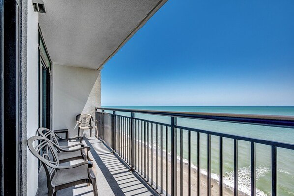 Beautiful 18th floor unit w/ huge oceanfront balcony providing panoramic ocean views. Featuring floor to ceiling windows / granite countertops in kitchen and all bathrooms / large walk in shower and flat screen tvs! Brand new to Luxury Beach Rentals, this 3 bedroom unit offers unobstructed oceanfront views from the 18th floor. This condo offers an oceanfront master bedroom with king bed and access to the huge oceanfront balcony. The second room offers one queen bed, the third room offers two double beds. Other features include huge 65inch smart TV in living room, washer and dryer, and fully equipped kitchen with granite countertops.