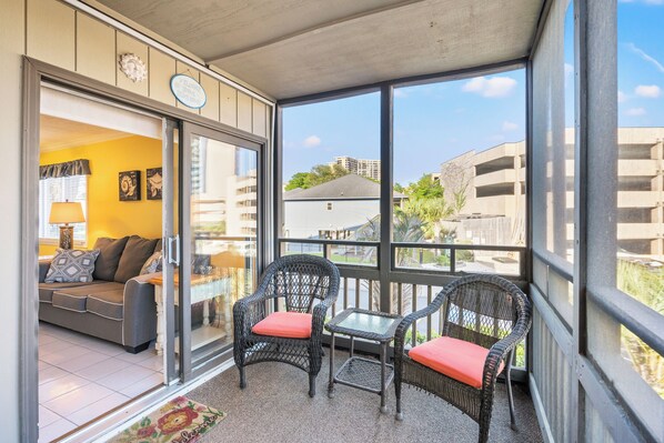 Welcome to Mariner’s Cove 131C—your perfect North Myrtle Beach escape! This well-maintained 2-bedroom, 2-bath 1st floor condo is designed for comfort and relaxation, featuring central air conditioning, a fully equipped kitchen, in-unit washer and dryer, and all the conveniences of home. The spacious living area and modern amenities, including flatscreen TVs and WIFI, ensure you and your guests have everything you need for a memorable stay.One of the standout features of Mariner’s Cove 131C is the unbeatable poolside view from both private balconies. Enjoy a front-row seat to all the poolside fun or unwind with a cold drink as you watch the sun glisten off the water. With a clear windowed view of the ocean right from your balcony, you can easily decide between a relaxing beach day or a splash-filled afternoon by the pool—no need to step outside to make the call.Located just a short walk from one of the world’s best beaches, Mariner’s Cove 131C offers direct access to the white sands and sparkling waters of the Grand Strand. Spend your days lounging by the outdoor pool, searching for seashells, riding the waves, or simply soaking up the sun. The screened-in porch is the perfect spot to enjoy meals al fresco while palm trees sway in the coastal breeze.The location can’t be beat—nestled in the popular Shore Drive area, you’re close to the Apache Fishing Pier, Ocean Annie’s Beach Bar with live music, and the natural marsh area filled with local birds and wildlife. You’ll also be near top attractions, shopping at Barefoot Landing and Tanger Outlets, championship golf courses, and a variety of dining and entertainment options such as Broadway on the Beach.Memories are waiting to be made at Mariner’s Cove 131C. Whether you’re seeking adventure or relaxation, this family-friendly condo is the ideal home base for your North Myrtle Beach vacation. Reserve your stay today and experience the best of the beach!