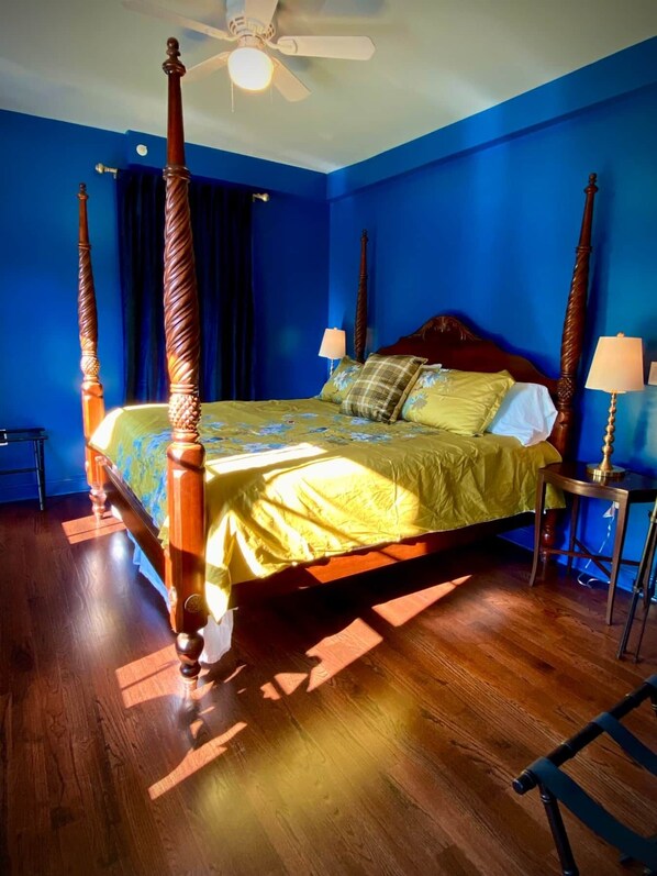 River views & salty breezes from the private deck nook in this calm & cozy second floor apartment suite freshly renovated in 2022. Sleeps three in eco certified memory foam king + day bed with bathrobes, eyemasks & deep blue velvet curtains included for lounging & snoozing comfort. Updated kitchen with dishwasher, blender & toaster, washer/dryer, sassy dressing room with vintage vanity and lighting, decorative cozy fireplace, Klipsch bluetooth speaker and games in the living area.⁣