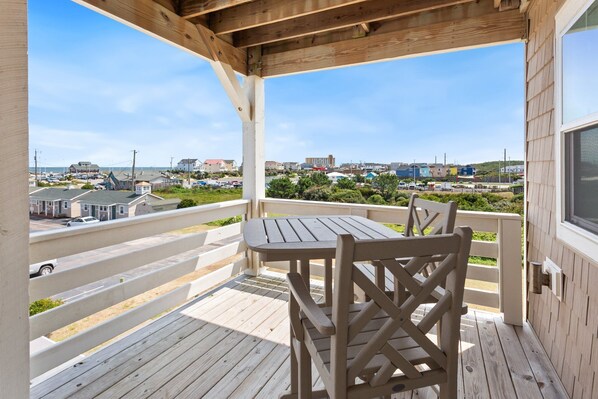 Spend your days on the Top Level and be greeted by a state-of-the-art Kitchen featuring elegant granite countertops and gleaming stainless steel appliances. The counter bar, with seating for six, provides a perfect spot for casual dining or morning coffee. The spacious Living Area invites you to relax and unwind, while the adjacent Dining Area, with seating for ten, is perfect for memorable family meals. Enjoy the ocean breeze on the oceanside covered porch, complete with outdoor dining, or take in the breathtaking sound views from the additional covered porch.