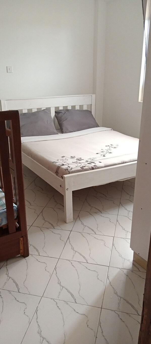It's an apartment with necessary amenities including a gym