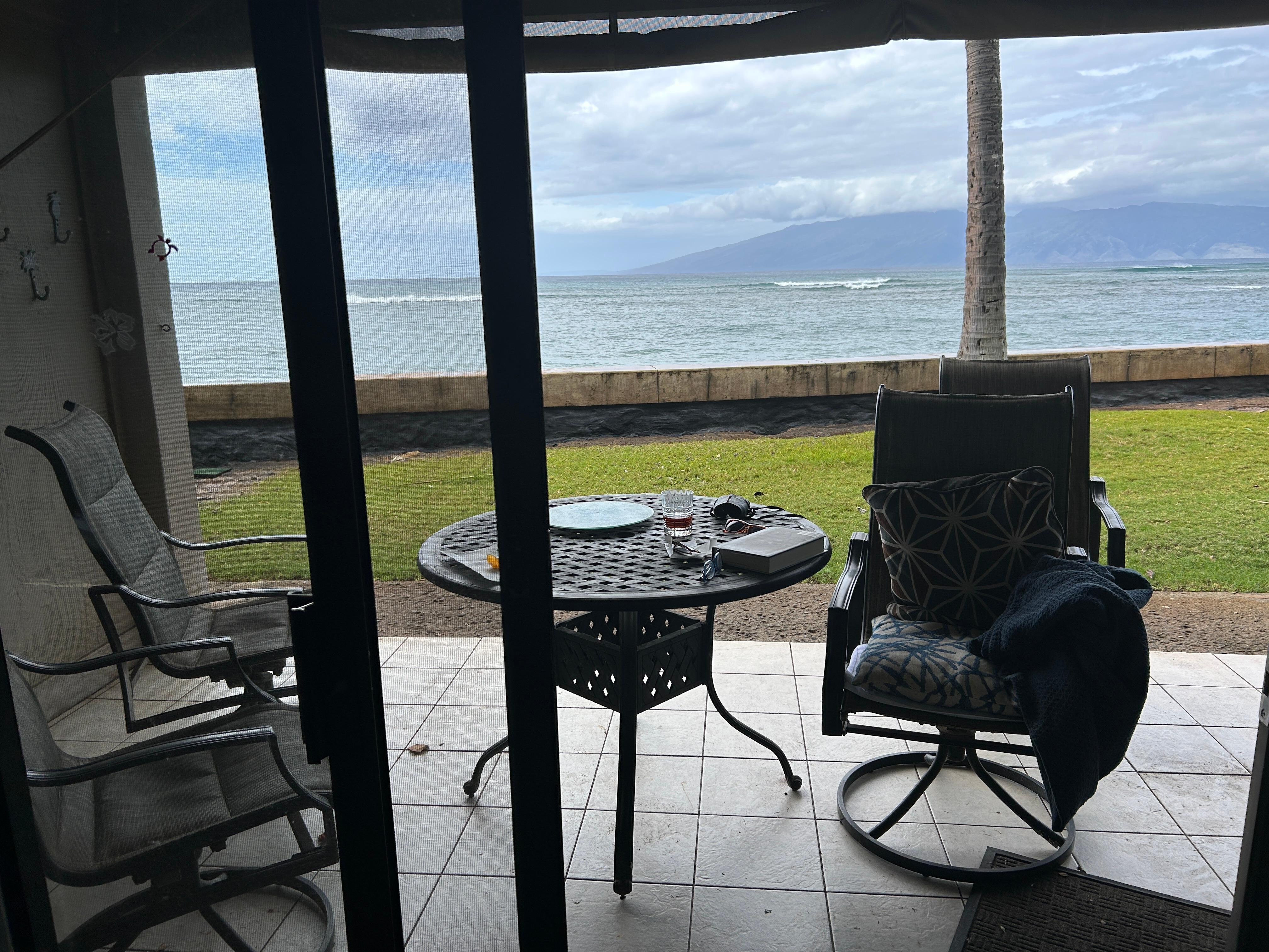 Trinken Sie ein Glas Wein auf Ihrer Veranda und beobachten Sie den Sonnenuntergang in Maui